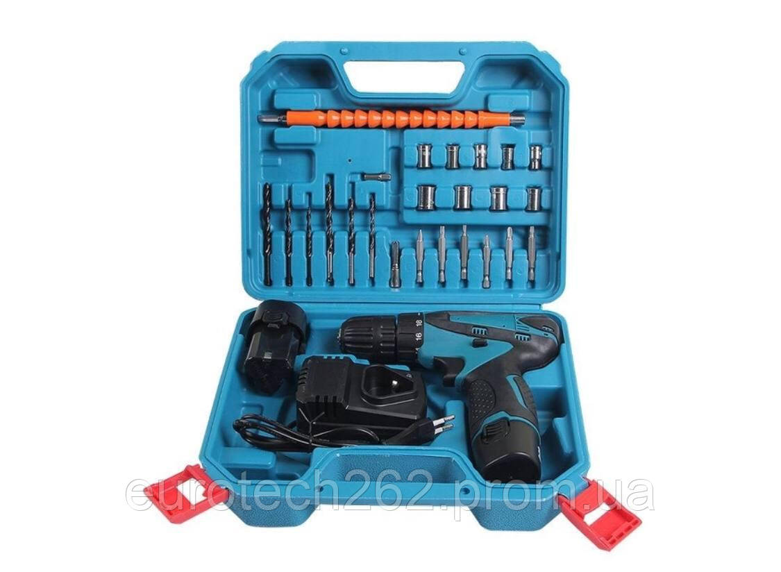 Акумуляторний шурупокрут 21V з набором біт і запасний акумулятор Шурупокрут із літієвим акумулятором Cordlles Drill Pro має потужний двигун, а також революційну технологію clever discharge (розумна розрядка). Технологія витрачає заряд акумулятора економно, що так само дає можливість працювати довше на 25%, порівнюючи з аналогічними шурупокрутами. Акумуляторний шурупокрут Cordlles Drill Pro (21V 2A/h Li-Ion) має досить багато функцій. Нею можна працювати в приміщеннях зі слабким освітленням, оскільки вона здатна підсвічувати робочий простір самостійно. Реверс дасть змогу не тільки завертати шурупи, а й вивертати їх назад. Крім того, робочий може сам регулювати процес — встановлювати потрібну швидкість і обмежувач крутного моменту. Продумана ергономіка ручки та самого корпусу інструмента, тому її зручно використовувати. Також варто зазначити й комплектацію, адже, крім самого пристрою, у пластмасовому кейсі до нього йде також і великий набір біт, свердел, насадок, а також гнучкий вал, який дасть змогу закрутити або викрутити необхідний шуруп у важкодоступному місці. Разом з основним акумулятором, до комплекту входить також і другий. Це дасть змогу використовувати пристрій удвічі довше, просто чергуючи між собою два акумулятори. До комплекту входить імпульсний зарядний пристрій для батарей, що працює від мережі 220 В. ОСОБЕННОСТИ: Новий шурупокрут Cordlles Drill Pro з технологією LXT Збільшення загального терміну експлуатації на 430% 2-швидкісний планетарний редуктор із металевими шестернями Встановлення 18 ступенів крутного моменту, електронне регулювання числа обертів і гальм двигуна 4- полюсний легкий і компактний двигун постійного струму Автоматична фіксація шпинделя Вага акумулятора зменшена на 40% КОМПЛЕКТАЦИЯ: Шуруповерт Два літій-іонних акумулятори 21V/2.0Ah Зарядний пристрій Набір біт, свердел, насадок, гнучкий вал (помінюється залежно від постачання) Пластиковий кейс