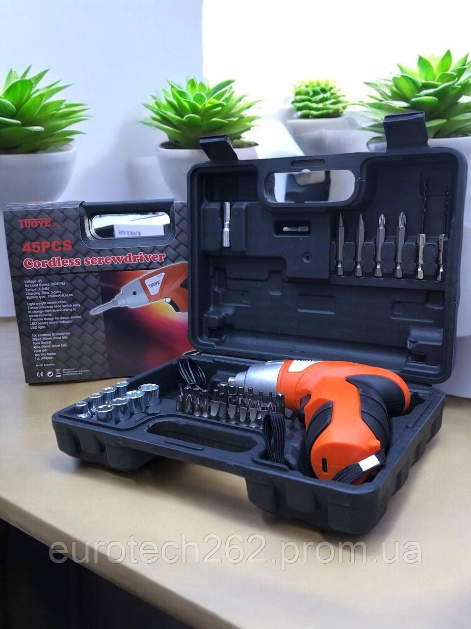 Акумуляторний шурупокрут TUOYE з комплектом насадок
