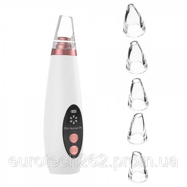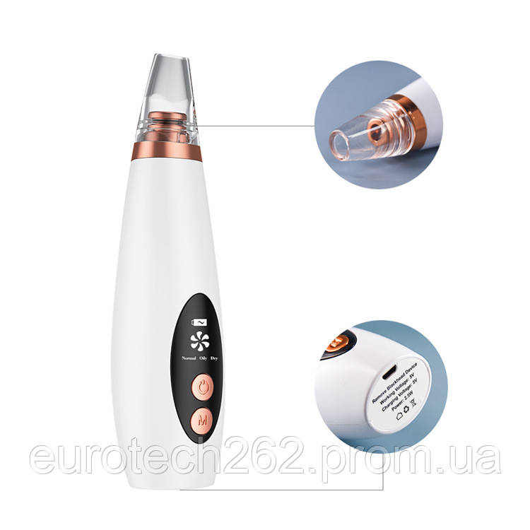 Пристрій заряджається від USB, простий і зручний у використанні, постачається з 3 соплами, які виконують різні функції для глибшого очищення обличчя. Це допомагає видалити пори, вугри, зморшки на обличчі та зберегти шкіру чистою. Вакуумним методом (всмоктуванням) очищає брудні пори від затверділих частинок.