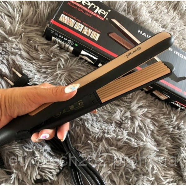 Професійна плойка щипці-гофре для прикореневого об’єму волосся Gemei 2955 дрібне гофре турмалінове покриття