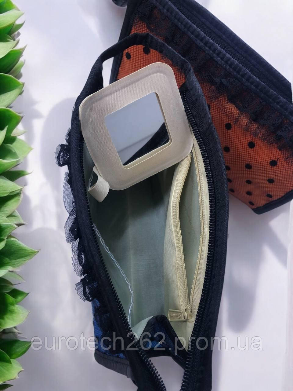 Косметичка в горошок з сіткою – стиль і зручність в одному аксесуарі! Ідеально підійдуть для зберігання косметики, дрібниць, аксесуарів та інших потрібних речей.