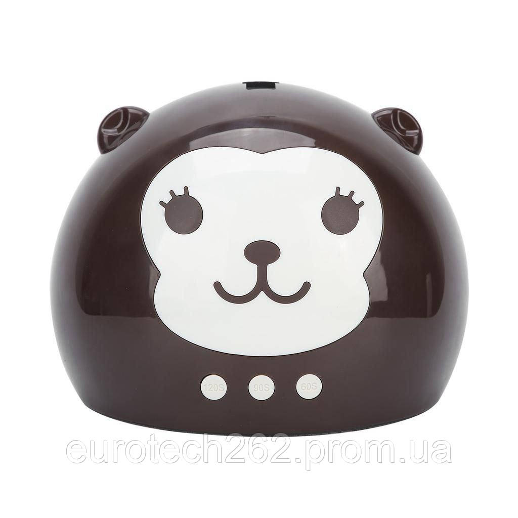 Така лампа найчастіше купується для старту у сфері манікюру та педикюру. 60S, 90S, 120S 3-ступеневий відлік є необов’язковим, що дає нігтям змогу вільно висушеними відповідно до часу необхідних для різних матеріалів манікюру та педикюру, З традиційним дизайном кнопок, злегка натисніть, щоб увімкнути апарат, проста робота та тривалий термін експлуатації приладу, Виготовлений із пластику ABS для дизайну взяли мульт-героя мавпочку, милу та популярну серед дівчаток.