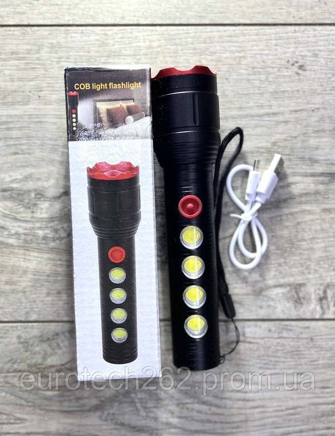 Ліхтарик Акумуляторний — це ліхтарик на акумуляторі обладнаний потужними світлодіодами, який гарантує прекрасну працездатність упродовж тривалого терміну. Ліхтарик має прекрасну технічну базу й експлуатаційні характеристики. Його можна використовувати з професійною й побутовою метою. Особливості: Водостійкий Ударостійкий Характеристики: Тип: акумуляторний Тип світлодіодів: СІВ Вхід — micro USB Матил