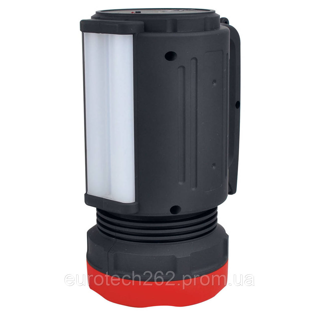 Цей комплект стане для Вас незамінним помічником на кемпінгу і не тільки. Ви можете використовувати прожектор для освітлення у Вас на дачі, на риболовлі, на будівництві або просто гуляючи вночі темної пори. Ліхтар на всі випадки життя. Зарядили вбудований акумулятор і використовуйте понад 12 годин для освітлення. За цей час Ви повністю мобільні та незалежні від електрики.Перносний ліхтар-прожектор має два джерела освітлення (передній світлодіод і бічні), вбудований акумулятор (виконує функцію power bank), зарядний пристрій від мережі 220 Вольт.Фонар світить у трьох режимах: 1. Світить як звичайний ліхтар (ввімкнений світлодіод спереду) — 100% яскравості. У цьому режимі видима дальність світлового променя понад 300 метрів. 2. Світить як звичайний ліхтар (ввімкнений світлодіод спереду) — 75% яскравості.3. Є 22 бічних світлодіоди (застосовуються як стаціонарний світильник).Емкість вбудованого акумулятора — 5500 мА·год.
