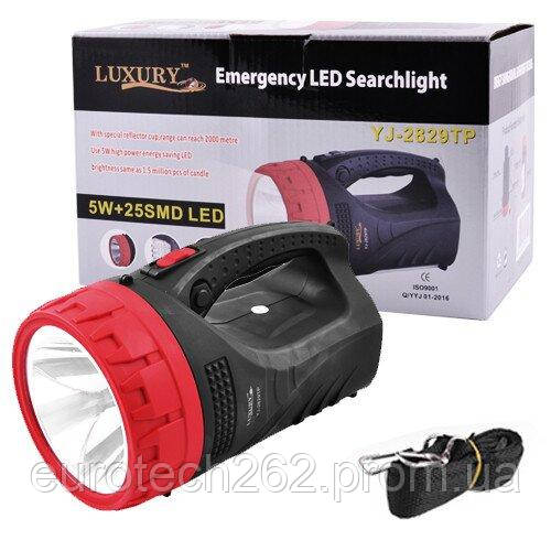 Ліхтар-прожектор переносний Luxury 2829 центральний діод 5W + бічні діоди 25 LED із зарядним пристроєм від мережі 220 В і вбудованим акумулятором.