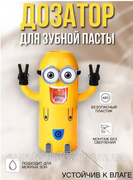 Міньйон дозатор зубної пасти дійсно принесе вам користь. По-перше, він заощадить простір у маленькій ванній кімнаті. По-друге, він із задоволенням підтримає дві зубні щітки. По-третє, допоможе заощадити на зубній пасті. Тюбику не буде жодного пощади, він буде вичавлений до останньої краплі.