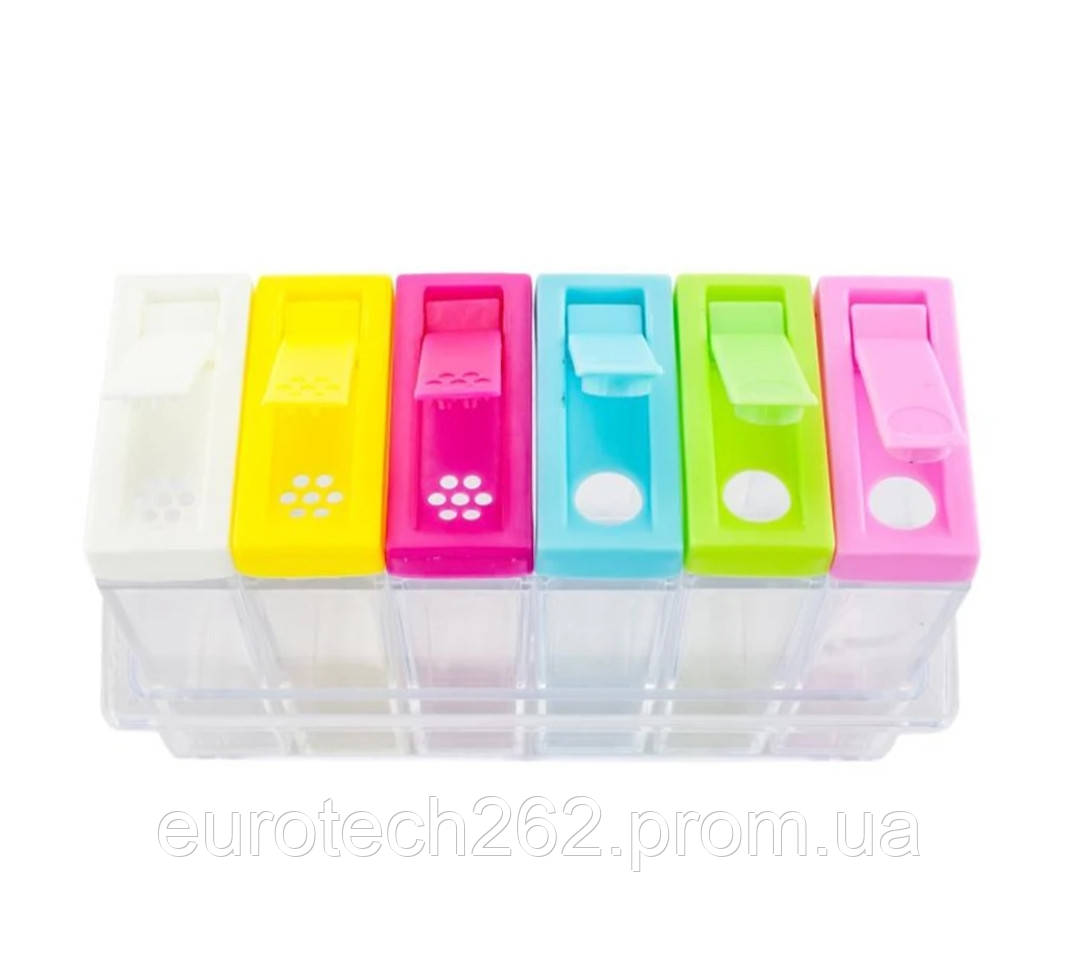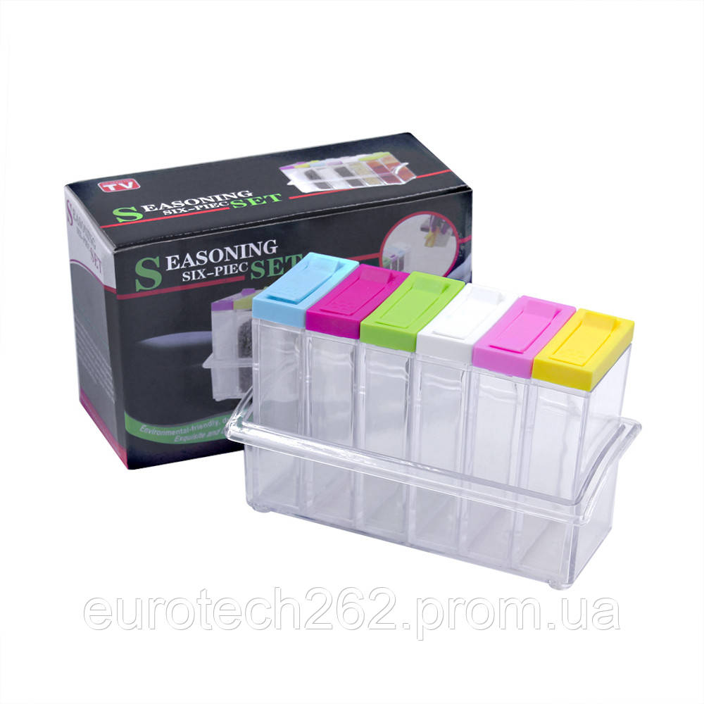 Набір для спецій із 6 судин компактний комплект ємностей для зберігання приправ і спецій, який, до того ж, чудово прикрасить Вашу кухню або їдальню. Набір ємностей для зберігання спецій