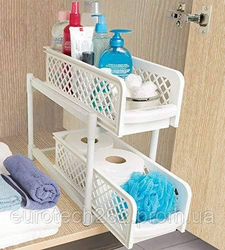 Органайзер для ванної кімнати для побутового приладдя.З Органайзером portable 2 tier basket drawers Ви зможете організувати простір і створити затишок у ванній кімнаті.