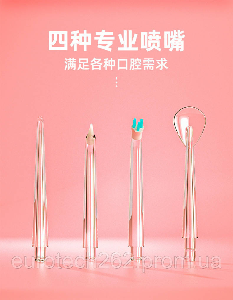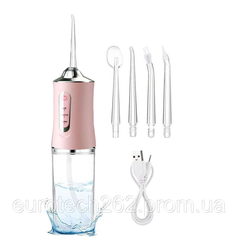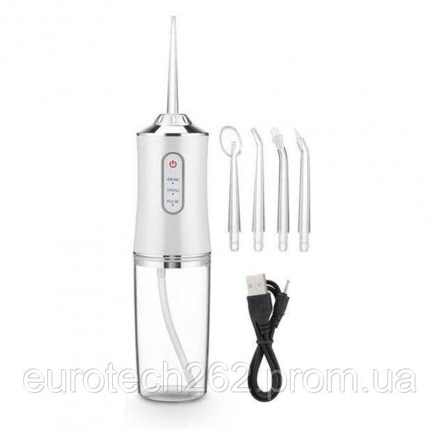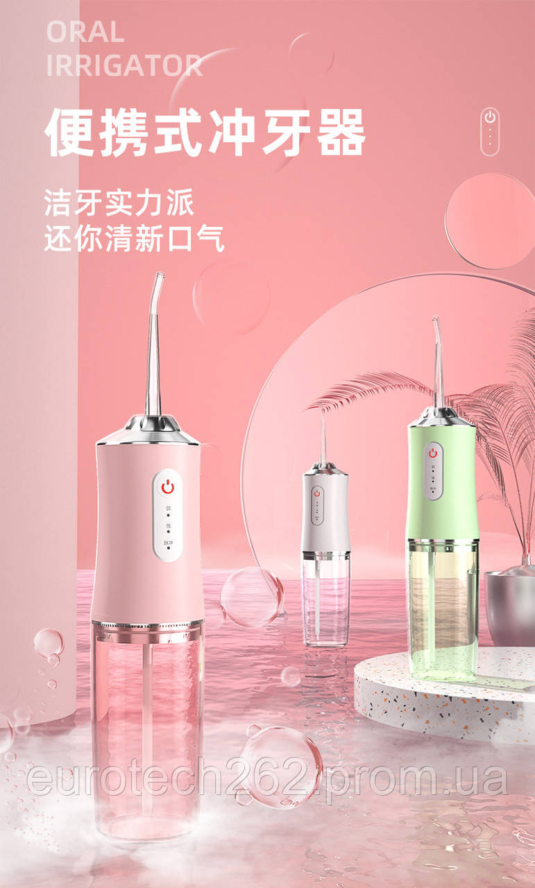 Портативний іригатор порожнини рота Oral Irrigator — високотехнологічний прилад для підтримки максимальної гігієни ротової порожнини. Принцип дії ґрунтується на технології подавання пульсувальної струменя води під тиском, завдяки чому вона ефективно проникає в проміжки між зубами, ясні кишені та інші недоступні місця для звичайної зубної щітки та зубної нитки. Іригатор зубний ефективно видаляє зубний наліт, бактерії, залишки їжі, масажує ясна; чудово підходить для догляду за брекет-системами, протезами, імплантами, імплантами, мостами. Підвищує ефективність догляду за порожниною рота на 93%, порівнюючи зі звичайною зубною щіткою.
