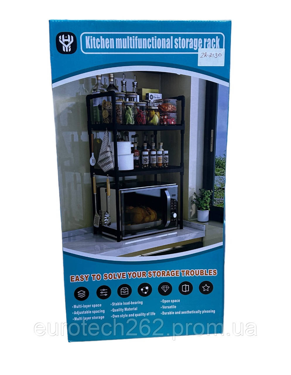 Полиця для мікрохвильової печі YH 6616 для кухні дає змогу неабияк заощадити місце та організувати зберігання кухонного приладдя.