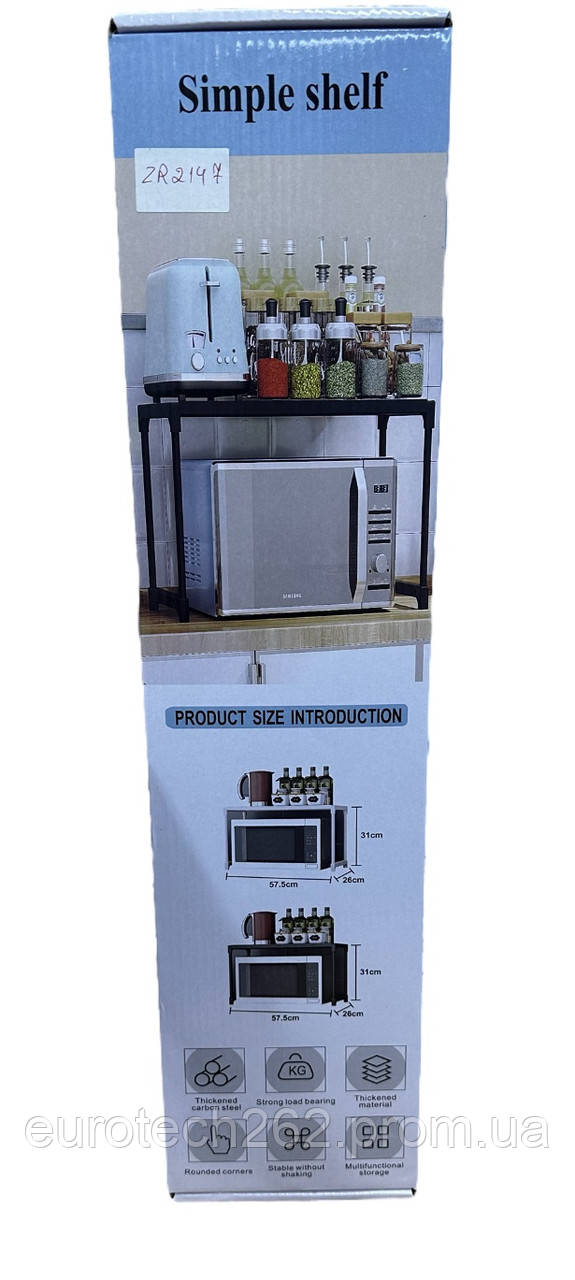 Полиця для мікрохвильової печі ZR — 2147 для кухні дає змогу неабияк заощадити місце й організувати зберігання кухонного приладдя.