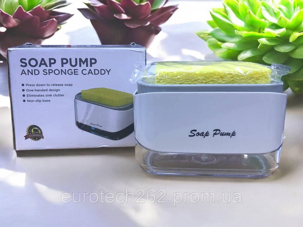 Диспенсер для мила з підставкою для губки "Soap Pump" — практичне та стильне рішення для кухні та ванноїЗабудьте про розкидані губки та мильниці, які псують зовнішній вигляд вашої раковини! Інноваційний диспенсер для мийного засобу з підставкою для губки "Soap Pump" не тільки економить місце, але й робить процес миття посуду більш гігієнічним і зручним.Цет аксесуар поєднує в собі два корисні елементи: дозатор і органайзер. Просто налийте рідке мило або засіб для посуду в резервуар, покладіть губку зверху — і з легким натисканням отримаєте потрібну кількість засобу. Не потрібно возитися з кришками або мокрими пляшками — все робиться однією рукою. Це особливо зручно, коли руки зайняті або мокрі.