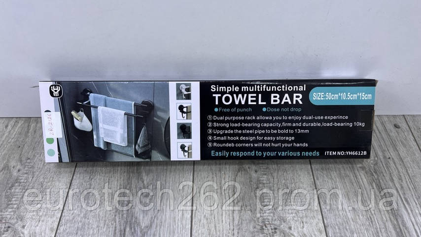 Тримач для рушників подвійний (клейний) YH 6612A — якісний аксесуар для ванної кімнати.